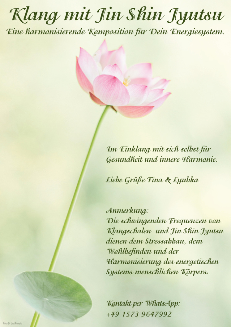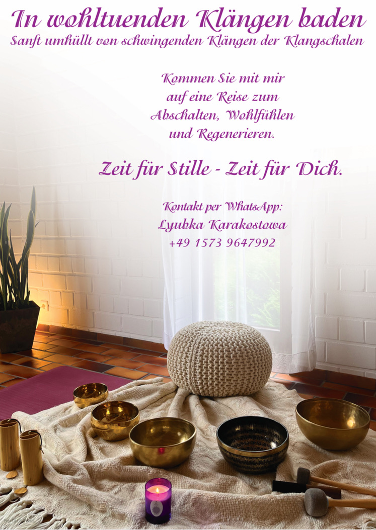 Durch die Klänge und die intensiven Schwingungen der Klangschalen wird eine harmonische Klanglandschaft erzeugt, die zur inneren Harmonie beträgt. Diese Klänge helfen loszulassen und führen zu tiefer Entspannung, unterstützen den Stressabbau, fördern die Achtsamkeit und erzeugen ein Gefühl der inneren Ruhe.